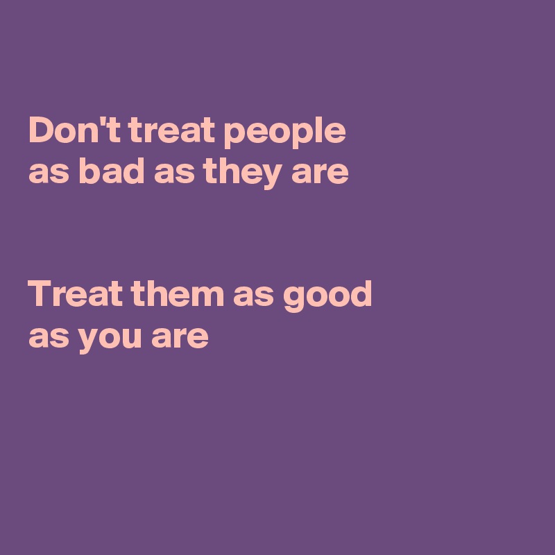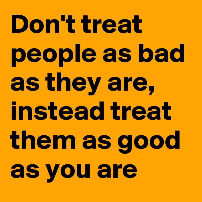 Dont treat people as bad as they are treat them as good as you are is a saying that has been printed on many images. Spiritual Seeker good growing as a person loving yourself personal development positivity self concept self development self love treat. Dont treat people as bad as they are treat them as good as you are. Treating people good doesnt mean being naive and getting walked over. Its really nice always treat to people with good way as you areand I love to treat people lovely and friendly. This is because he deals better with things than with people. Dont treat people as bad as they are Treat them as good as you are Post navigation Theory of Life. If you treat them like they treat you you are just as bad as they are. Dont treat people as bad as they are treat them as good as you are.